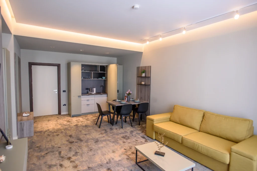Oreo Apart Hotel vă pune la dispoziție apartamentul 601, o cazare modernă și confortabilă, ideală atât pentru sejururi scurte, cât și pentru vacanțe prelungite.